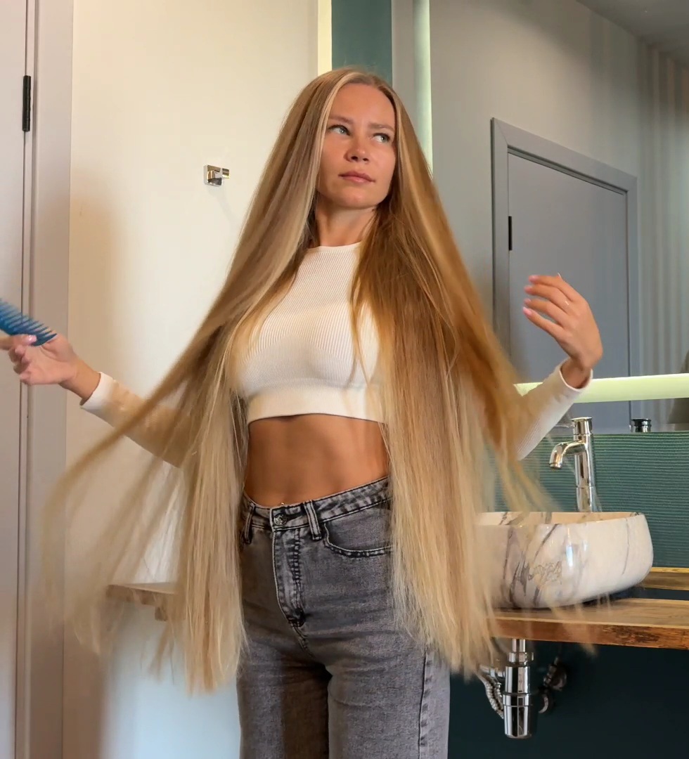 This is Julia's next movie for MsRapunzel. She is a professional model and has the silkiest straight blonde hair. A sample clip from the video is available on our YouTube channel.