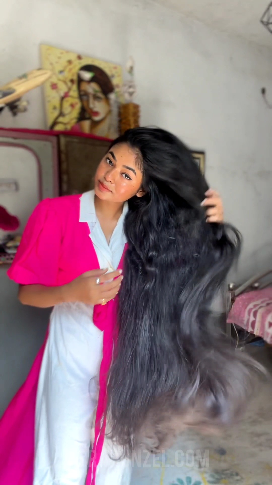 This is Poly's first movie for MsRapunzel. She has beautiful hip length wavy black hair. A sample clip from the video is available on our YouTube channel.