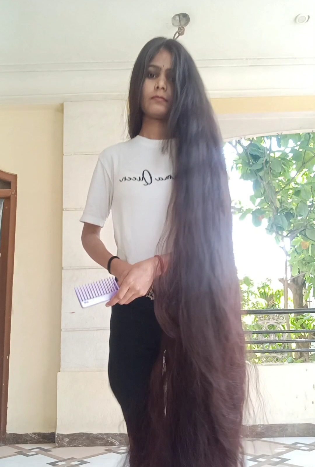 This is Shivi's first movie for MsRapunzel. She has beautiful silky straight classic length black hair. A sample clip from the video is available on our YouTube channel. This video is 17 min in length!
