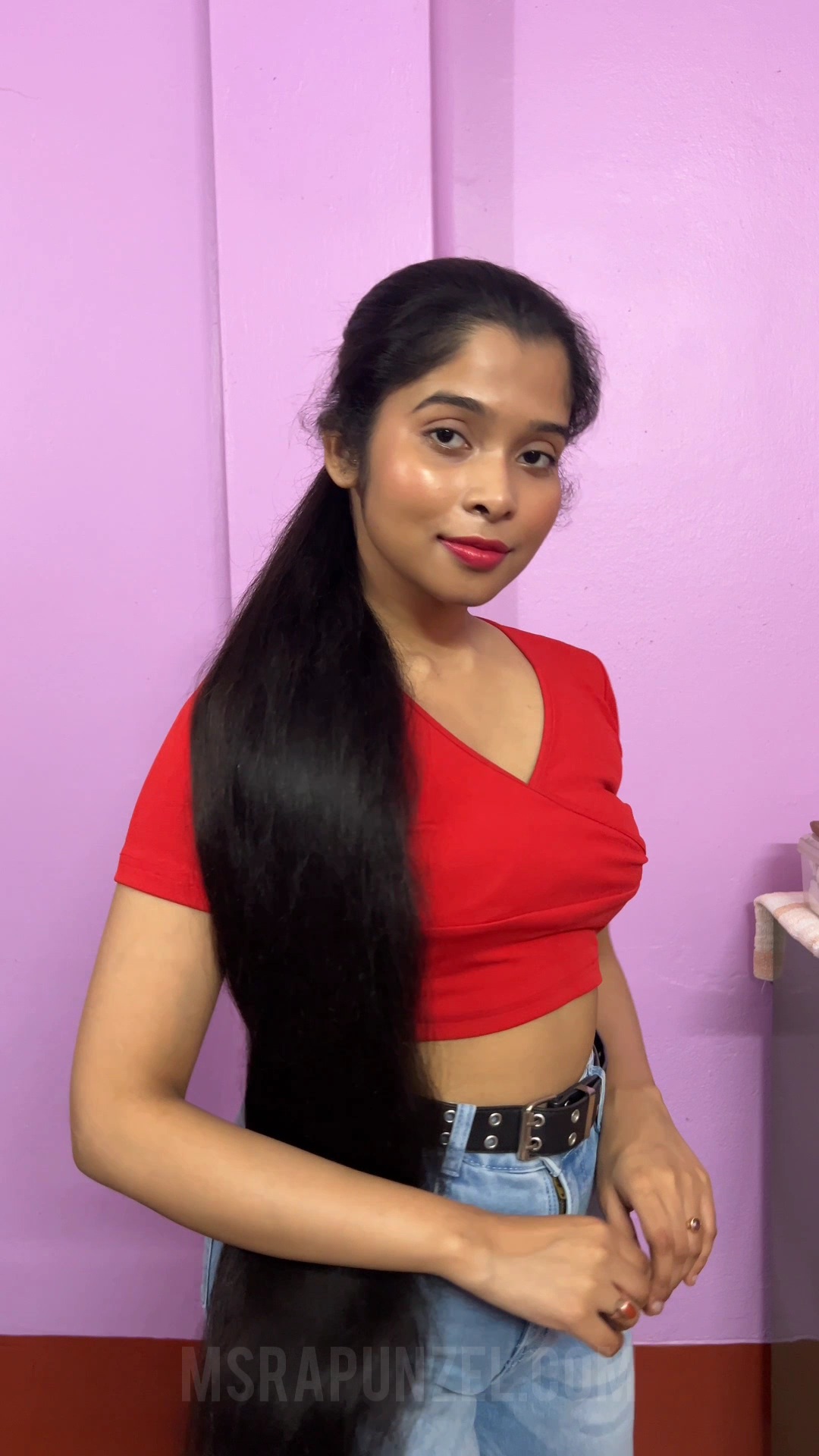 This is Sri's first movie for MsRapunzel. She has beautiful wavy classic length black hair. A sample clip from the video is available on our YouTube channel.