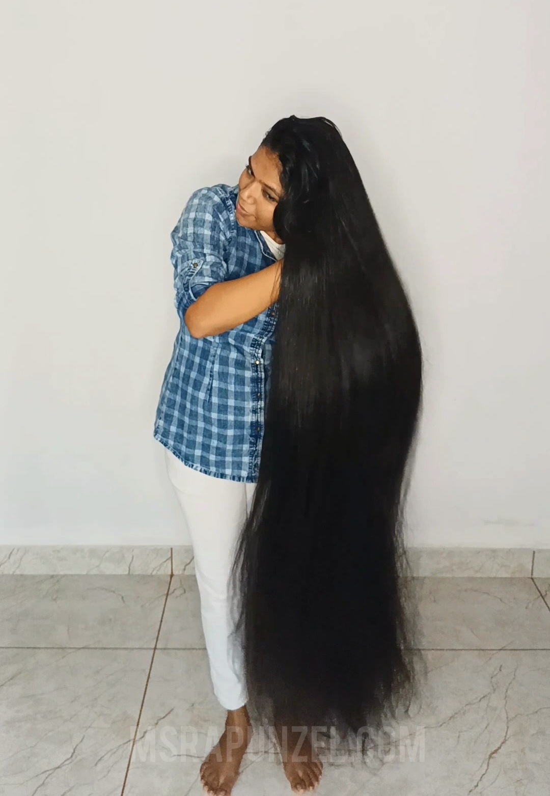 This is Surya's second movie for MsRapunzel. She has beautiful calf length thick black hair. A sample clip from the video is available on our YouTube channel.